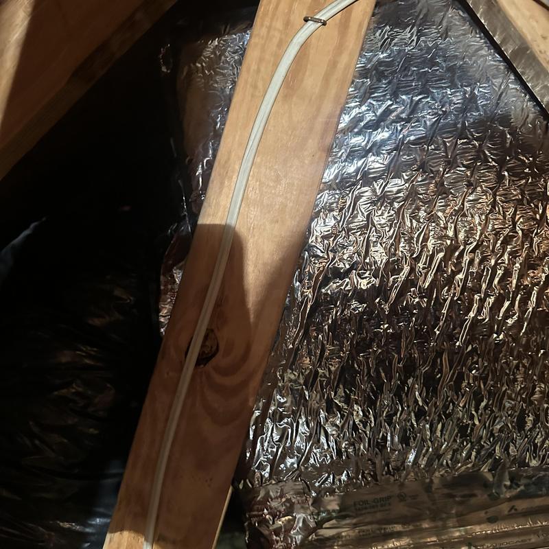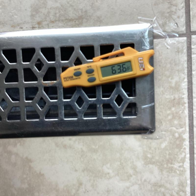 An HVAC technician in Ashburn, VA, reconnected a disconnected attic supply duct. The duct was secured with straps and HVAC tape. The technician tested the system to confirm proper airflow. The heating and cooling system now operates normally, and airflow has been restored throughout the home.