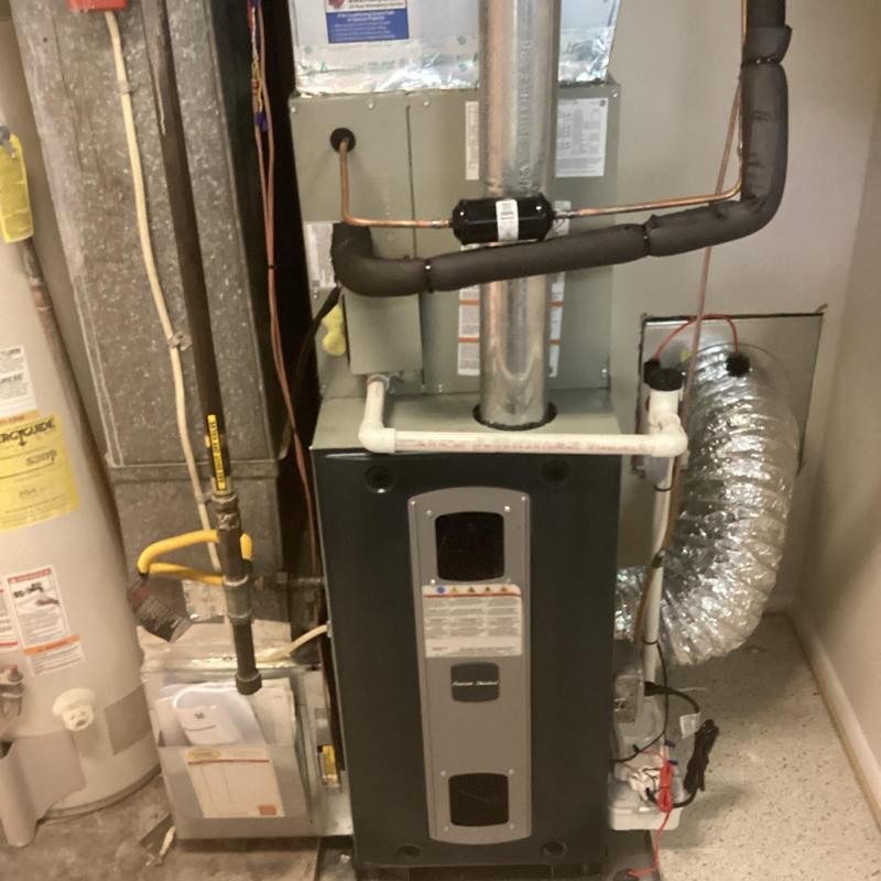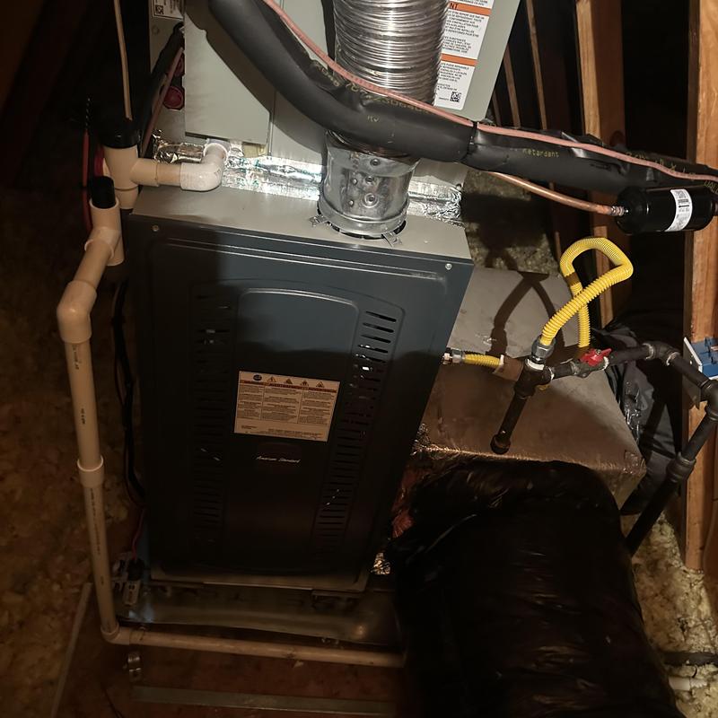 OHA HVAC Plumbing Roofing Chimney and Fireplaces installed a 3-ton American Standard split gas HVAC system in Fredericksburg, VA. Work included new thermostat, evaporator coil, furnace, and condenser. Technicians removed the old unit, updated all connections, and confirmed system performance through pressure testing and vacuuming. The system meets manufacturer specifications and is fully operational.