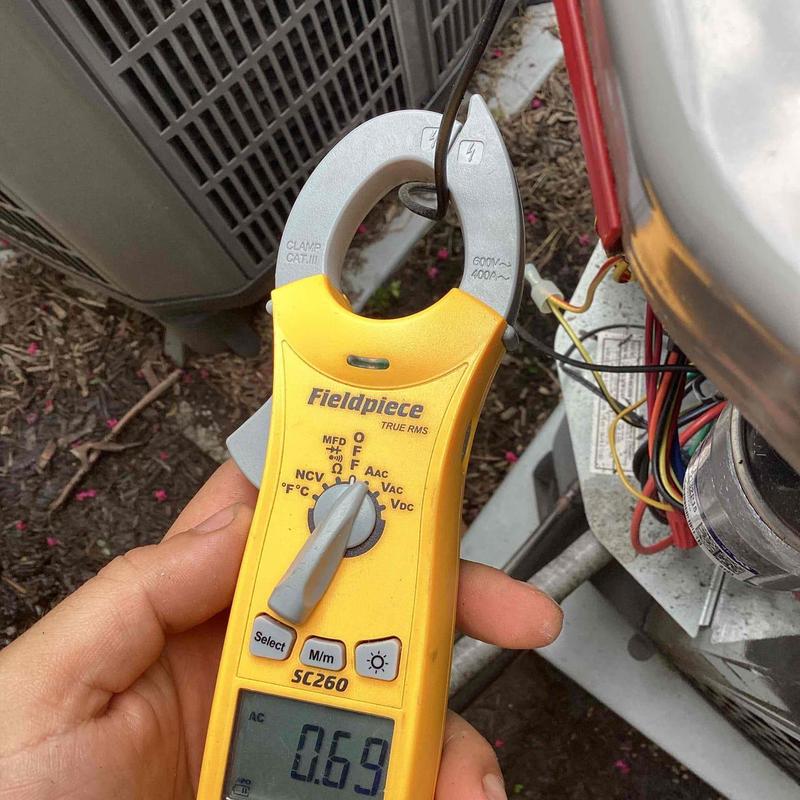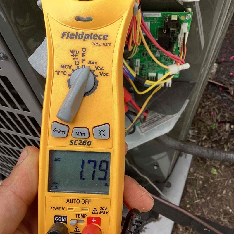 OHA HVAC Plumbing Roofing Chimney and Fireplaces completed an HVAC inspection in Fredericksburg, VA. The technician measured amp draws on the motor, fan, and compressor, checked supply and return temperatures, inspected the indoor coil, and confirmed all wiring and line sets were intact. Both indoor and outdoor units were working properly during the visit.