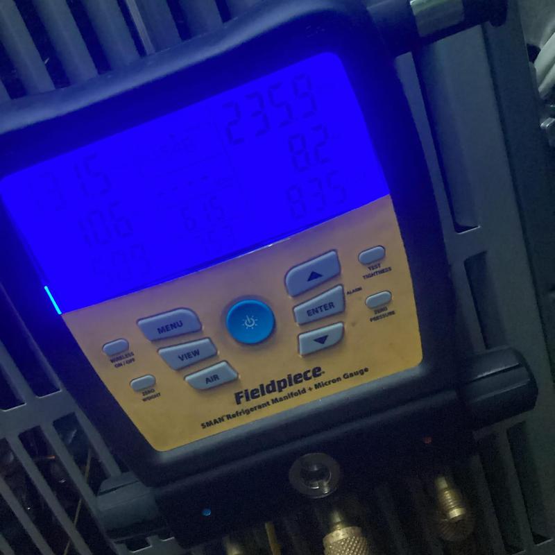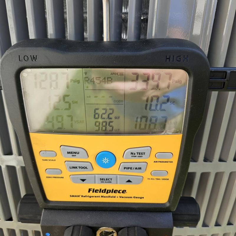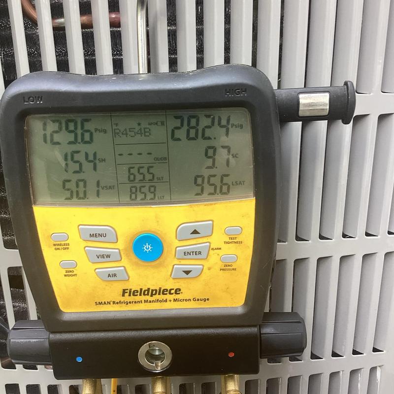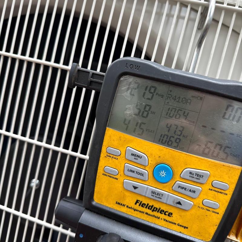 HVAC technicians in Ashburn, VA recharged an underperforming air conditioning system with R-22 refrigerant. They confirmed the condenser showed no major leaks or oil discharge. Final readings indicated improved performance. The system is now cooling properly. A follow-up visit is scheduled to review full system replacement options with the property owner.