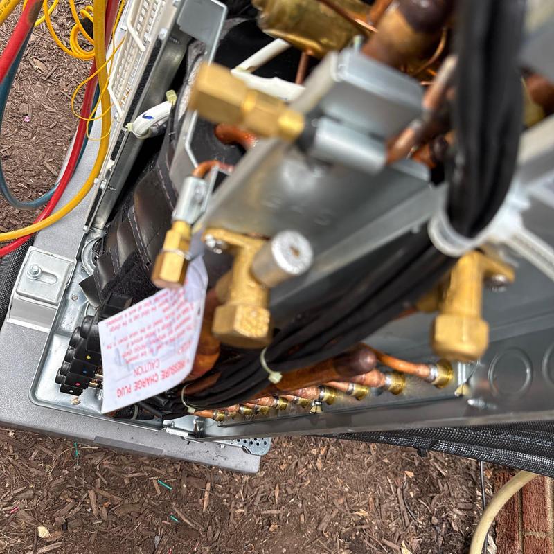 Technicians in Fredericksburg, Virginia installed a new 3 Ton Coleman split heat pump system. The job included replacing the existing HVAC, installing a new air handler, thermostat, disconnect, floor wet switch, and pressure-testing the system. The team connected to existing ductwork and completed vacuum testing to ensure proper operation.
