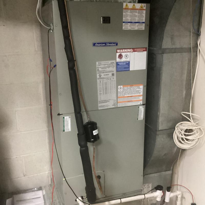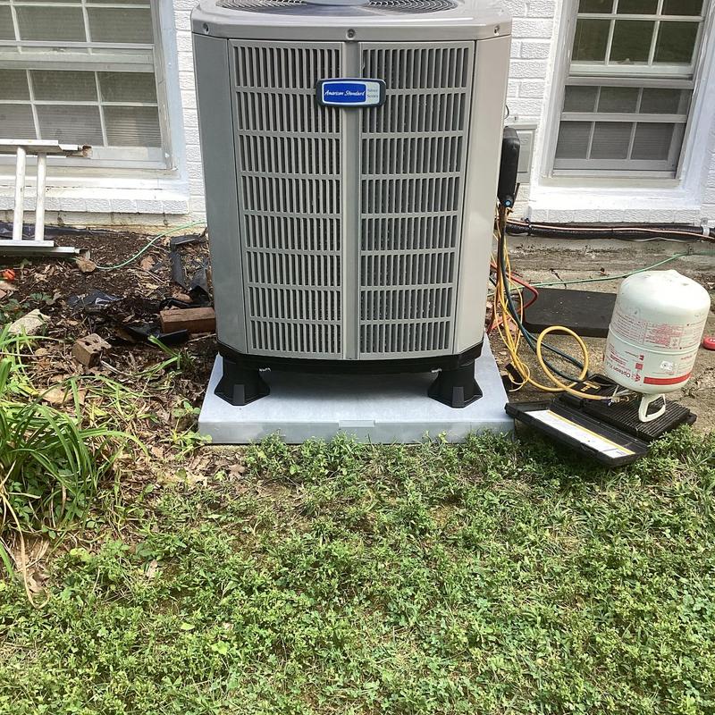 OHA HVAC Plumbing Chimney and Fireplaces installed a 3-ton American Standard split heat pump system in Arlington, Virginia. The team added a thermostat, air handler, and heat strip, completed humidifier connections, rerouted the waterline, installed a new drain, and confirmed proper function with an outdoor temperature sensor. The system runs reliably with no issues.
