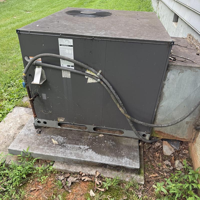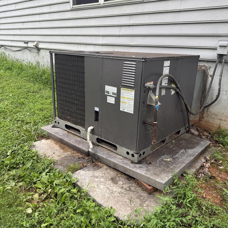 OHA HVAC Plumbing Chimney and Fireplaces installed a 14.3 SEER 3.5-ton Air Temp gas package unit in Locust Grove, VA. The team added a new duct cover, digital comfort controller, refrigerant charge, outdoor pad, and completed system calibration. The unit connects to existing electric and ductwork. A labor warranty and maintenance plan were included.