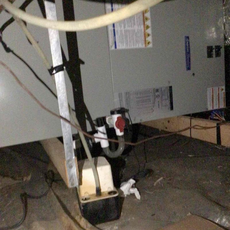 A technician repaired a no-cooling issue for a downstairs HVAC unit in Locust Grove, VA. They cleared a blocked float switch and cleaned the air handler, which had water buildup from deteriorated insulation. Management approved a diagnostic fee while waiving drain line cleaning charges.