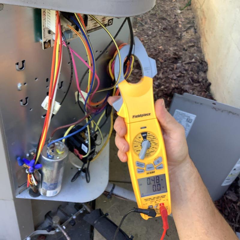 A technician completed HVAC maintenance in Locust Grove, VA. They inspected the heating system, flushed the drain, and tested electrical components. They recorded amp and temperature readings, identified low subcooling, and recommended installing a start assist to improve system performance.