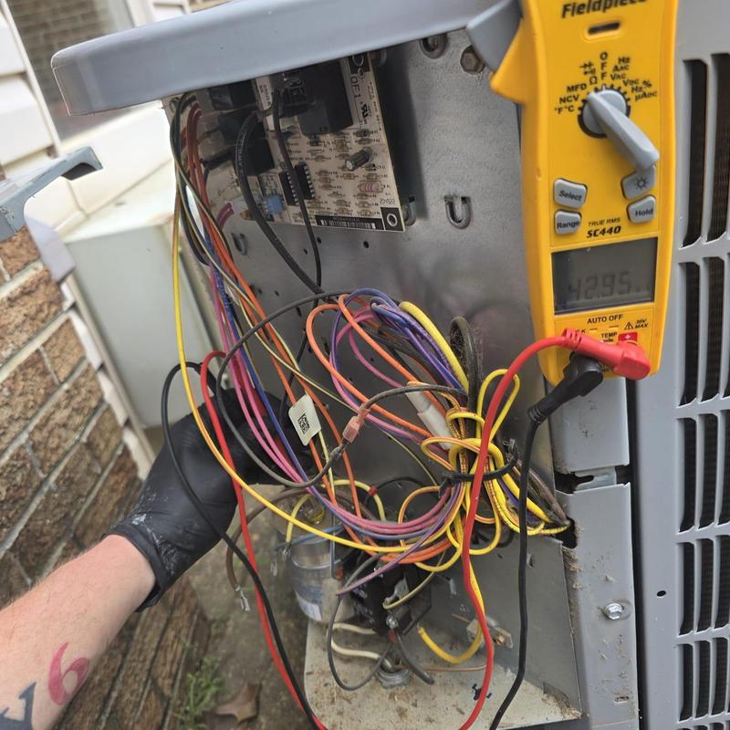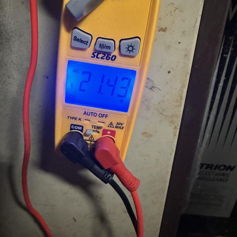 An HVAC technician in Fredericksburg, Virginia diagnosed a cooling issue caused by abnormal voltage readings and resistance in the thermostat wiring. The furnace received insufficient voltage, and analysis showed a likely failure in the thermostat or its wiring. Additional inspection was advised to confirm and resolve the underlying electrical problem.