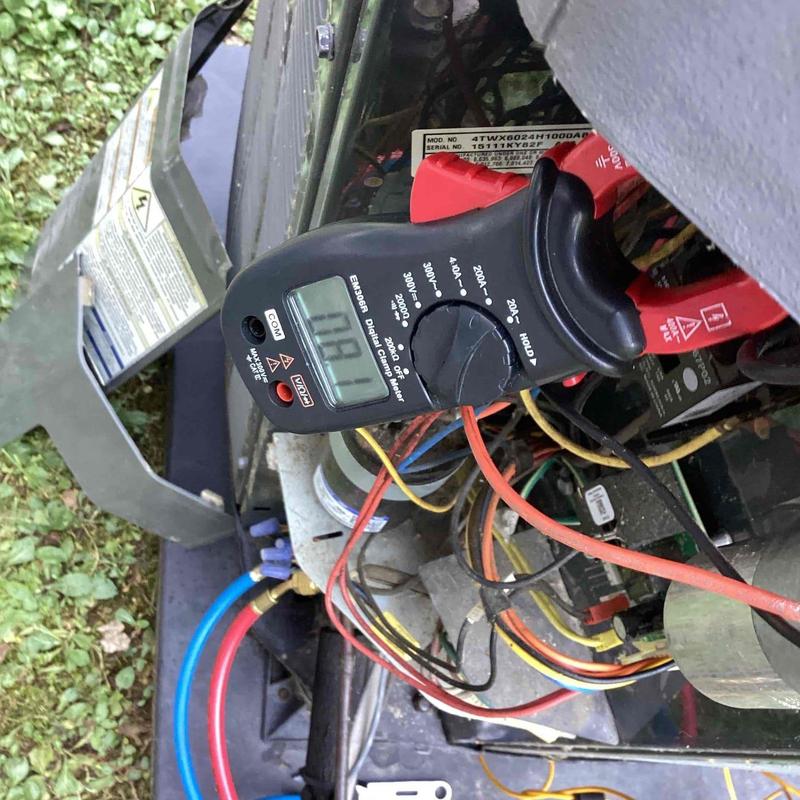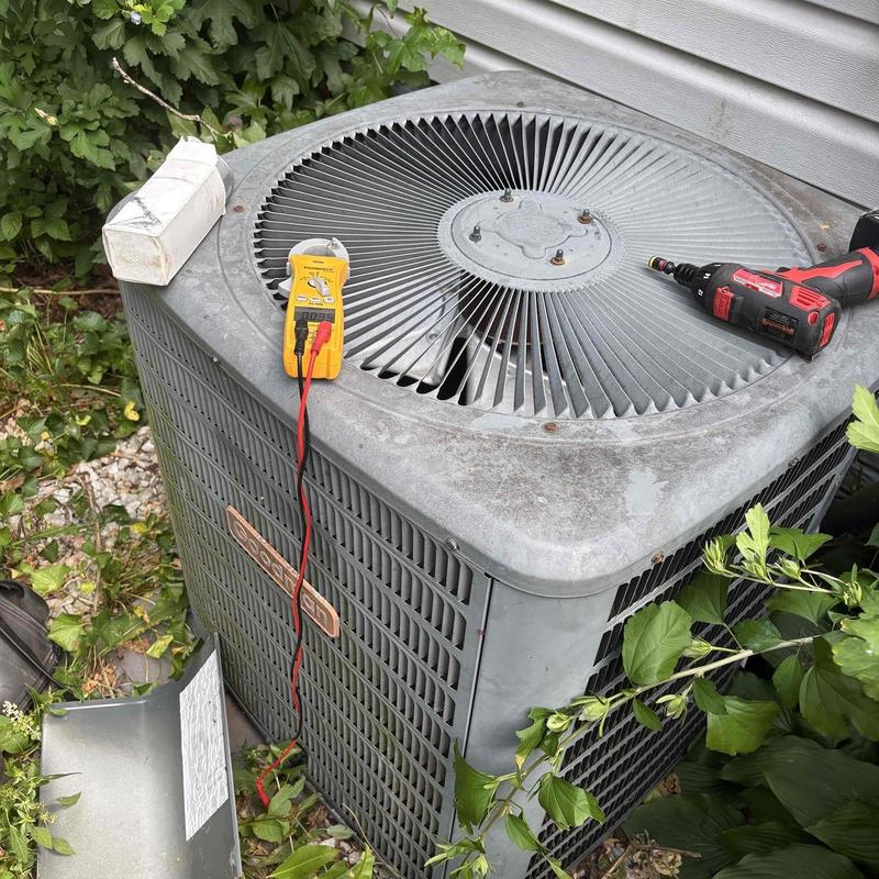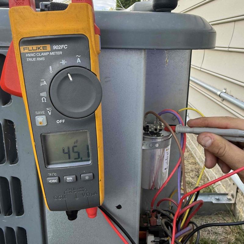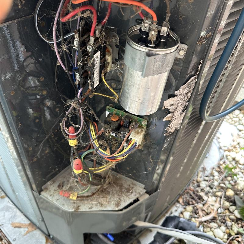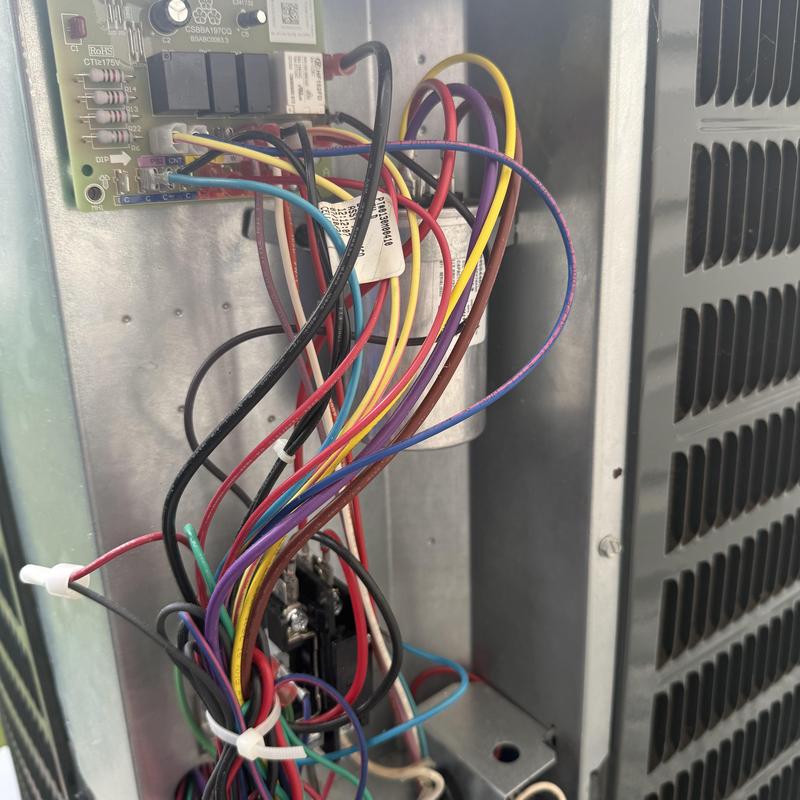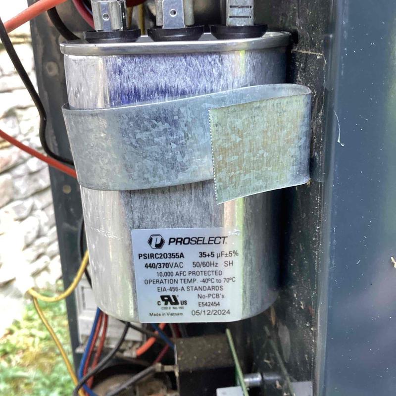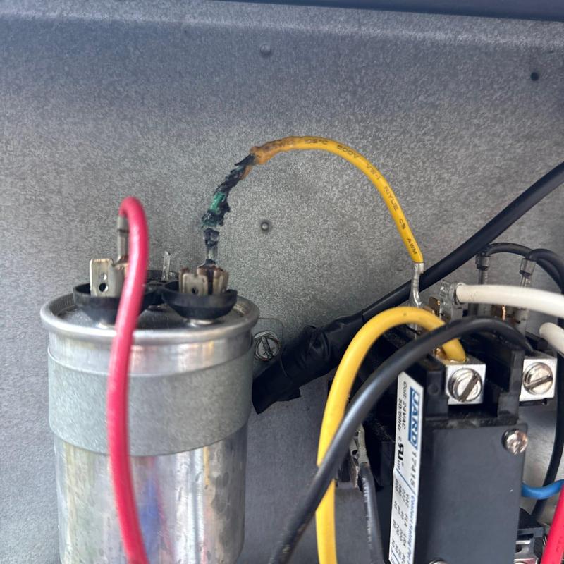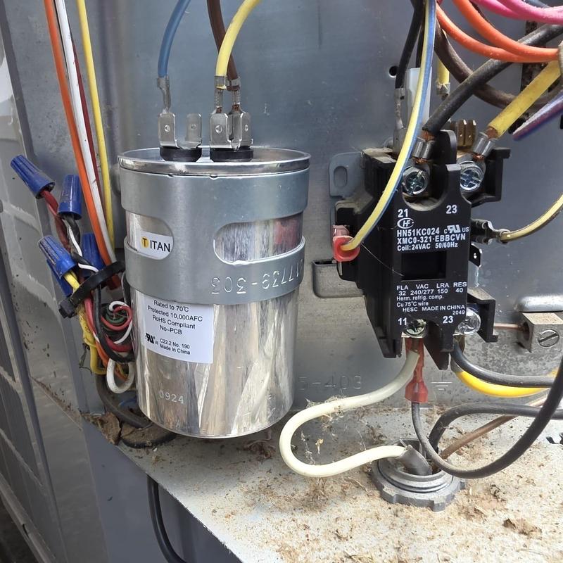 A technician repaired a residential HVAC system in Stafford, VA that was not blowing cold air. The team fixed a faulty electrical termination to the motor start assist, restored system power, and completed safety testing. The unit now starts correctly and produces cool air as expected. A 30-day limited warranty covers the repair.