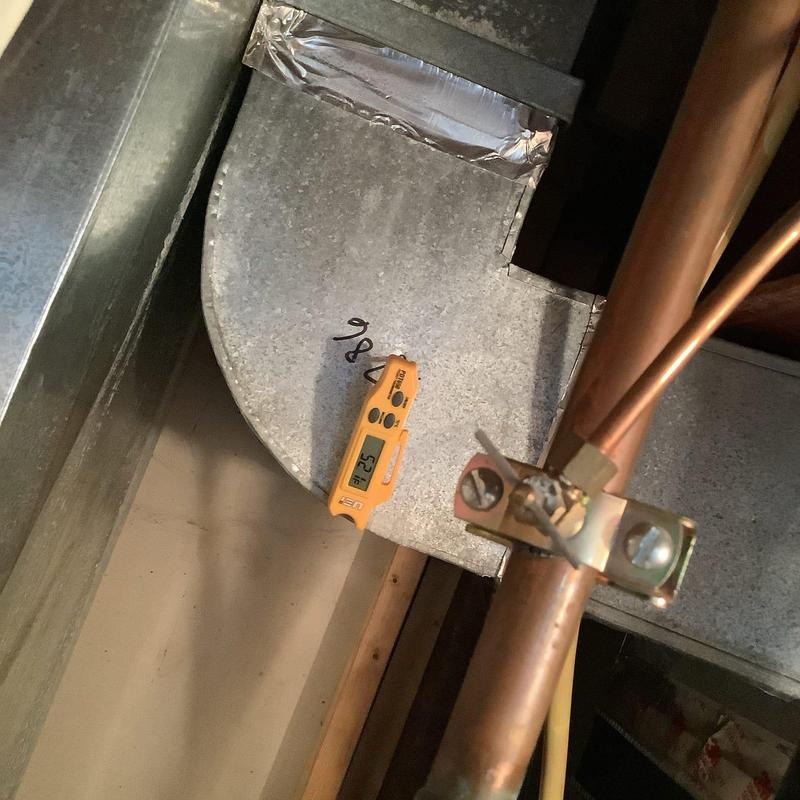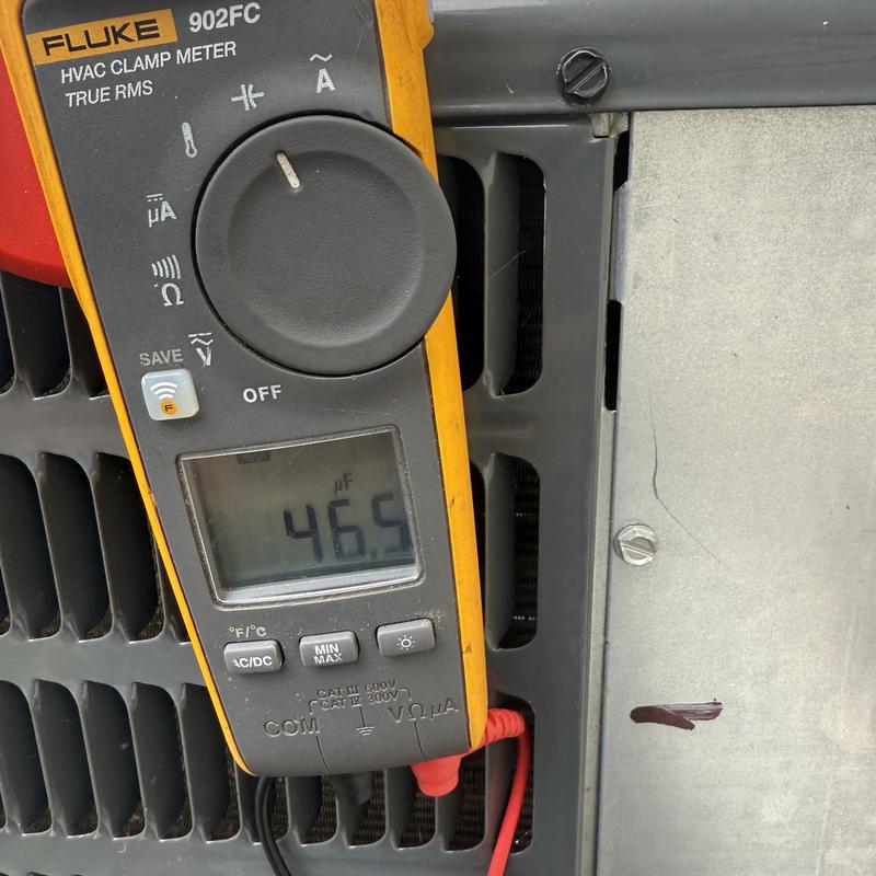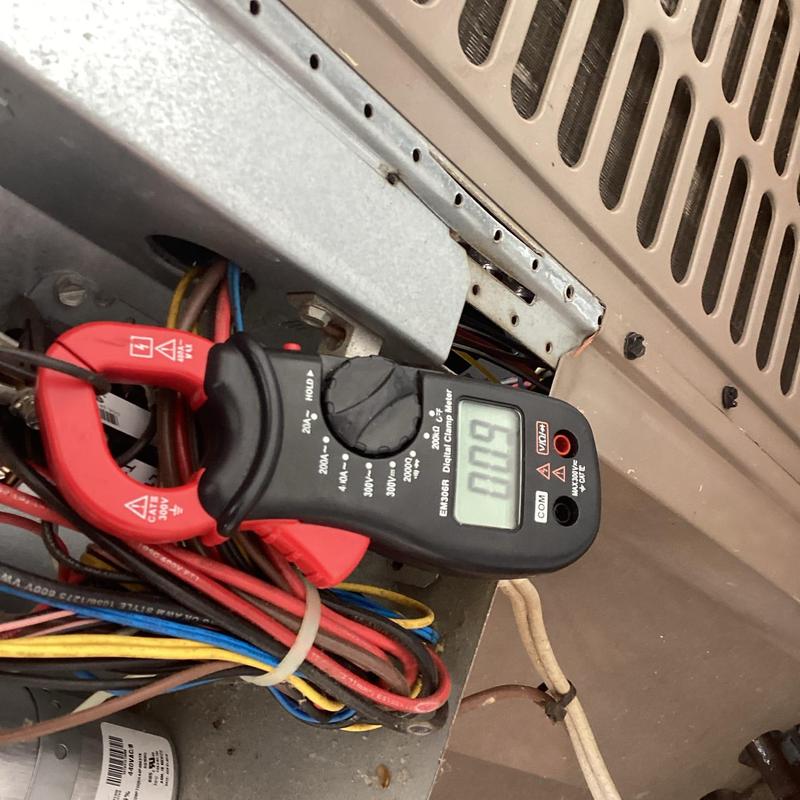A technician completed a full HVAC system tune-up on a downstairs unit in Fredericksburg, Virginia. Services included inspecting the blower motor, checking coils, testing capacitors, verifying the temperature split, flushing condensate drains, and evaluating air filters. The system passed all checks and is functioning as expected.