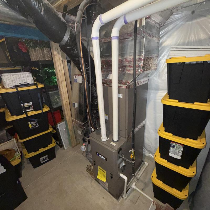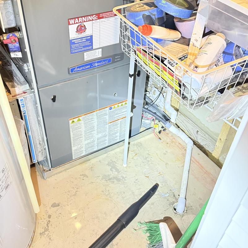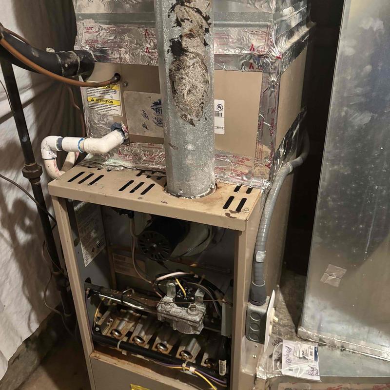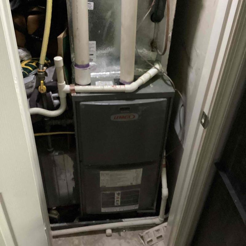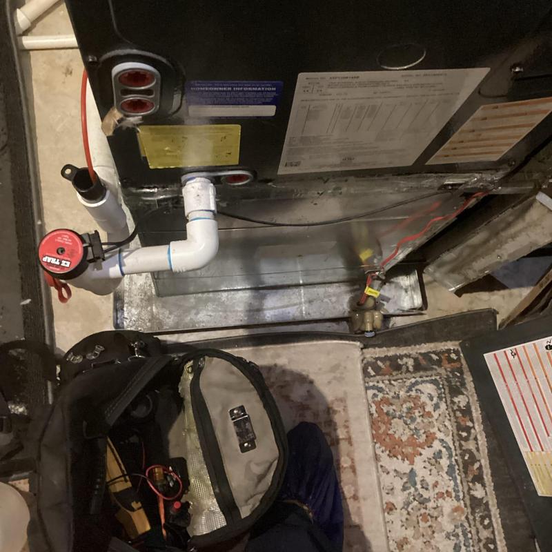 An HVAC technician inspected a furnace in Stafford, Virginia, after water was found near the unit. The system remained functional, and the issue was confirmed not to be HVAC-related. The technician advised contacting a plumber to address the source of the leak. No HVAC repairs were necessary.