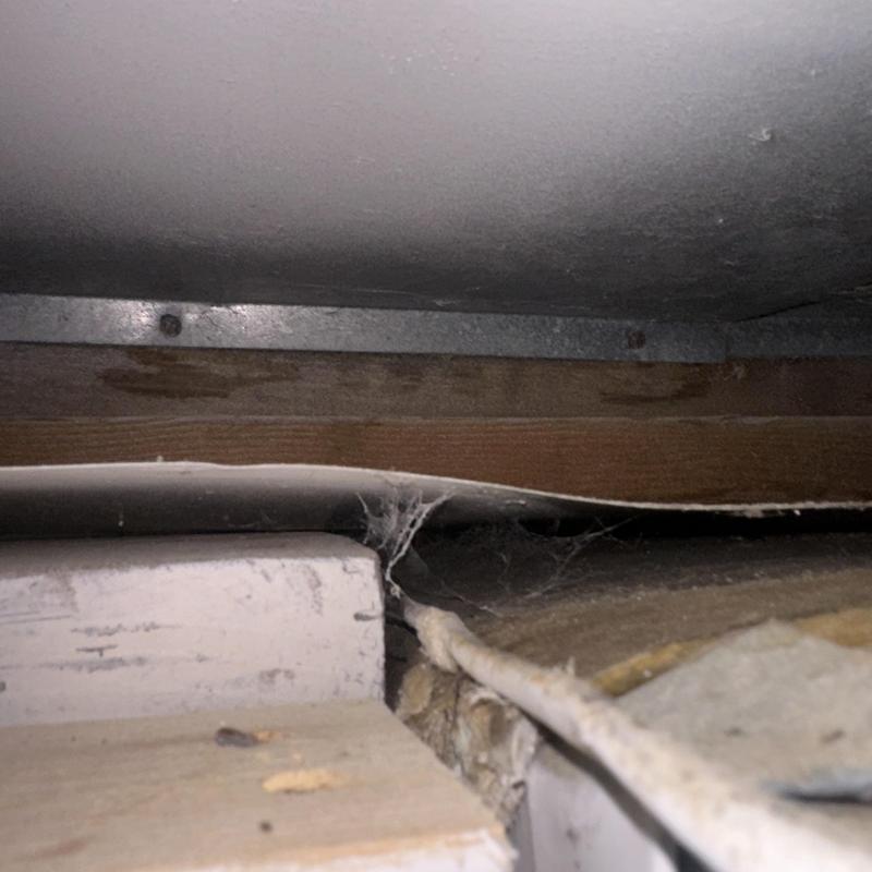 A technician in Stafford, VA inspected an HVAC system in a 25-year-old home after moisture caused ceiling damage and mold. The system was still cooling. The technician recommended replacing flexible ducts and installing a dehumidifier to manage humidity and prevent future mold growth. An estimate was provided during the visit.