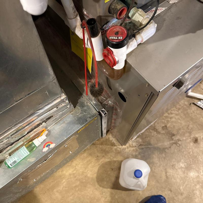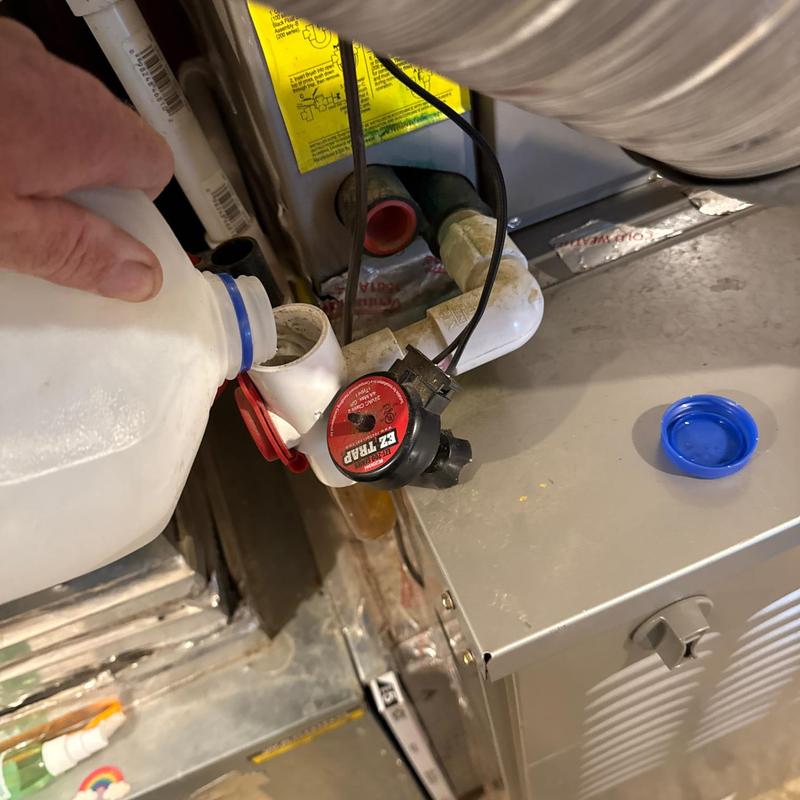 A technician in Stafford, VA serviced a basement AC unit leaking water. The team cleared a clogged drain line, checked the pump function, and added an EZ trap for protection. They recommended professional water removal to manage floor damage and control mold risk.