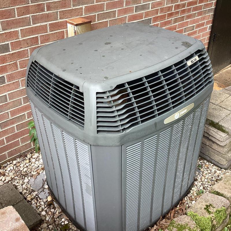 A technician inspected an HVAC outdoor condenser unit in Fredericksburg, Virginia. The inspection identified a possible bird entry point. The technician advised sealing the opening to prevent nesting. The unit showed no performance issues during the visit.