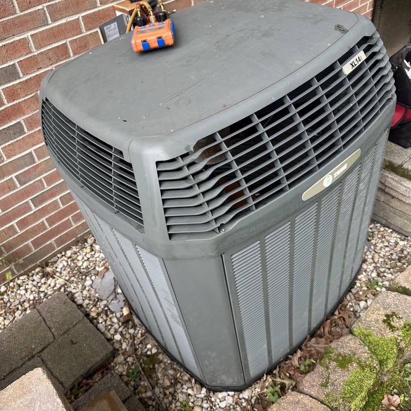 A technician repaired a residential central air conditioning system in Stafford, Virginia. The system had stopped cooling due to a low-pressure switch fault. Service included refrigerant system renovation, internal leak sealer and dryer installation, and full performance testing. The unit was recharged and restored to proper cooling.