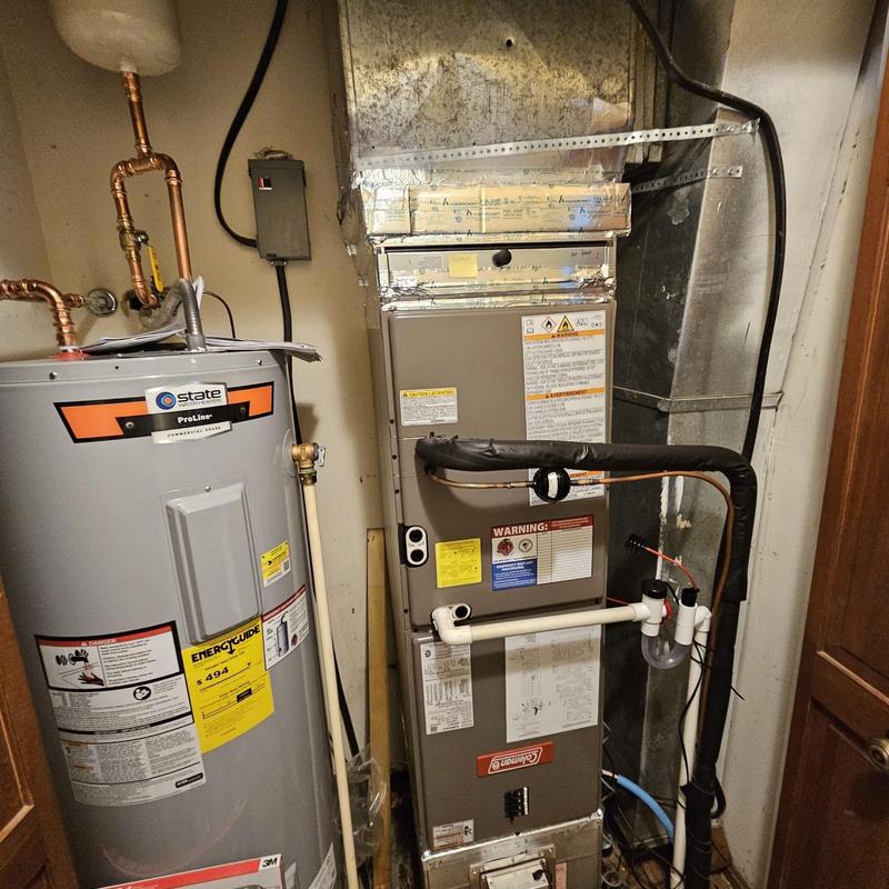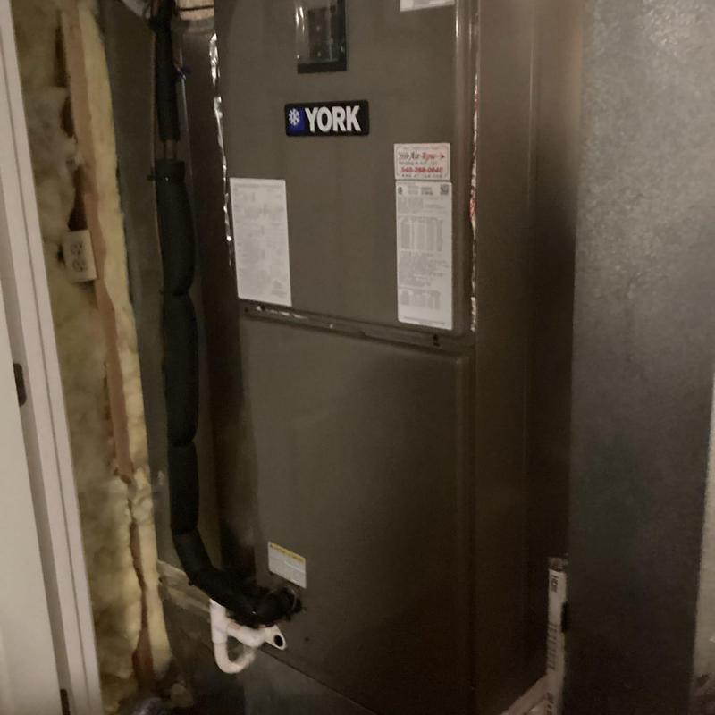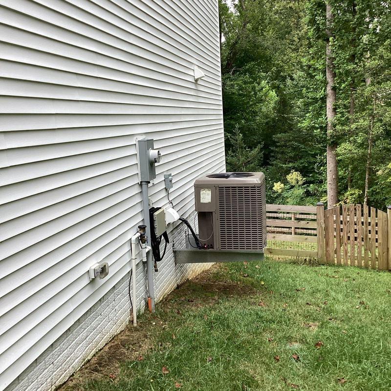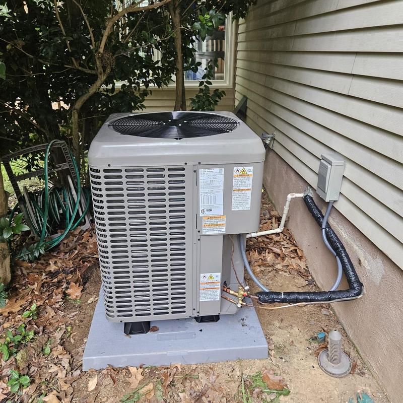 Technicians in Fredericksburg, Virginia installed a new 3 Ton Coleman split heat pump system. The job included replacing the existing HVAC, installing a new air handler, thermostat, disconnect, floor wet switch, and pressure-testing the system. The team connected to existing ductwork and completed vacuum testing to ensure proper operation.
