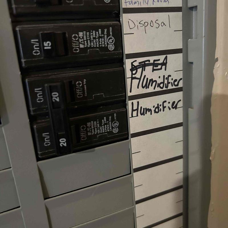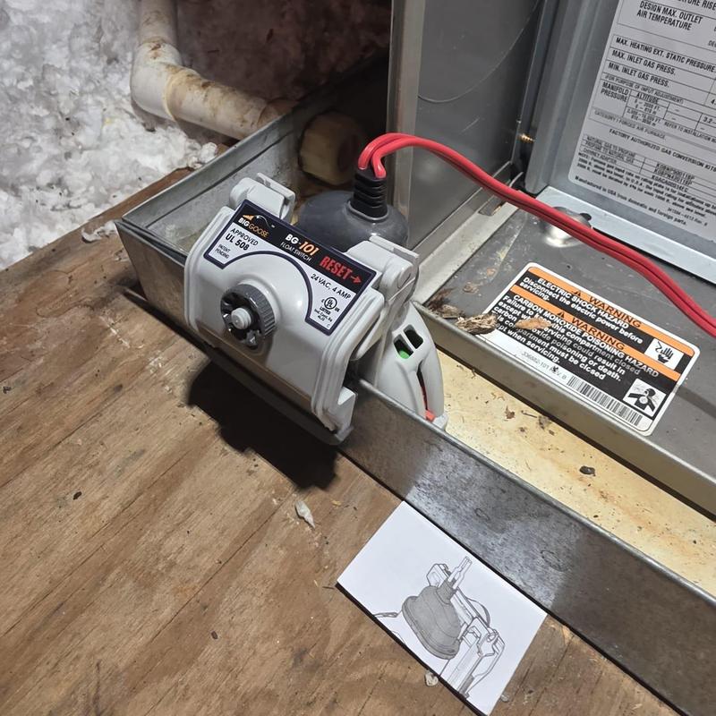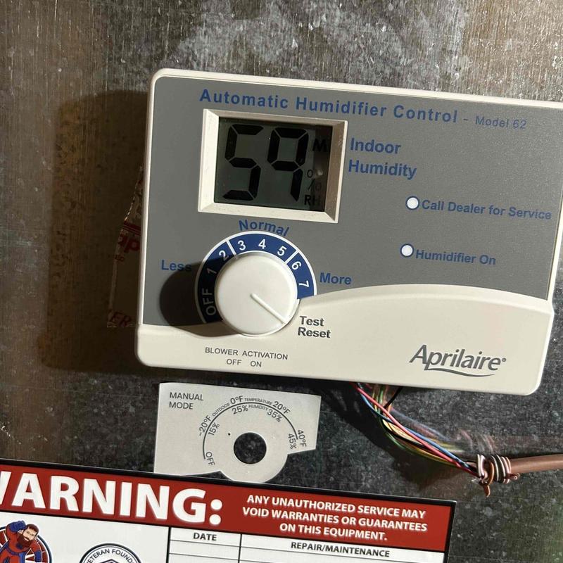 A technician in Stafford, VA supported a county inspection by meeting the inspector on site, providing attic access with a ladder, replacing a 20-amp breaker for a steam humidifier, and installing a knob for the humidistat. This work ensured system functionality and inspection readiness.