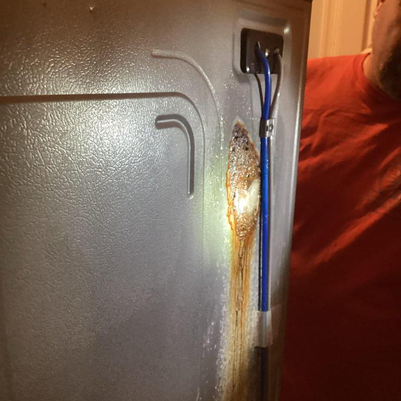 A technician in Fredericksburg, Virginia, located and repaired a hidden pipe leak above a kitchen after cutting an access hole. The leak was traced to a damaged tee fitting between the kitchen and dining room. The crew replaced the faulty section and advised the customer on curing time for the new adhesive.