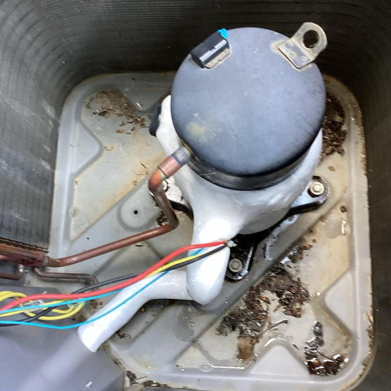An HVAC technician in Woodbridge, VA addressed a no-cooling emergency at a rental home. The frozen condenser, suction line, and evaporator coil delayed full inspection. A clogged blower wheel was discovered. The technician recommended system replacement due to unit age and several repair needs. Property management was contacted for approval before proceeding.