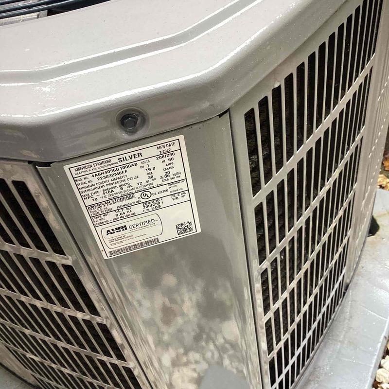 Technicians in Stafford, VA installed a 3 Ton American Standard Split Dual Fuel 80% Gold Series system. The project included a new thermostat, heat pump, evaporator coil, gas furnace, and system accessories. They removed the old equipment, reconnected existing utilities, pressure tested to 150 psi, vacuumed the system, and confirmed proper operation.