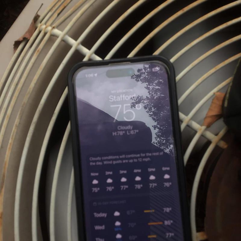 An HVAC technician in Stafford, Virginia resolved a central air issue involving an upstairs unit with a fluctuating thermostat. The technician cleared a partially clogged condensate drain line, flushed it with hot water, and tested the float switch. The system resumed normal cooling without requiring further service.