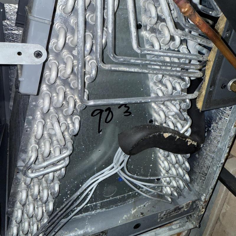 OHA HVAC Plumbing Chimney and Fireplaces completed an HVAC parts follow-up in Stafford, VA. A second technician confirmed a coil issue caused by an unlevel drain pan and inspected surface rust inside the furnace. No active leaks or urgent issues were found during the inspection.