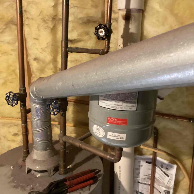 A technician in Stafford, VA completed a demand plumbing service to correct a water heater installation. The expansion tank was not properly secured, causing the unit to fail inspection. The technician strapped the tank in place to meet code requirements and ensure the system functions correctly.