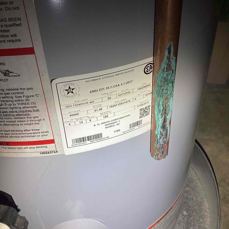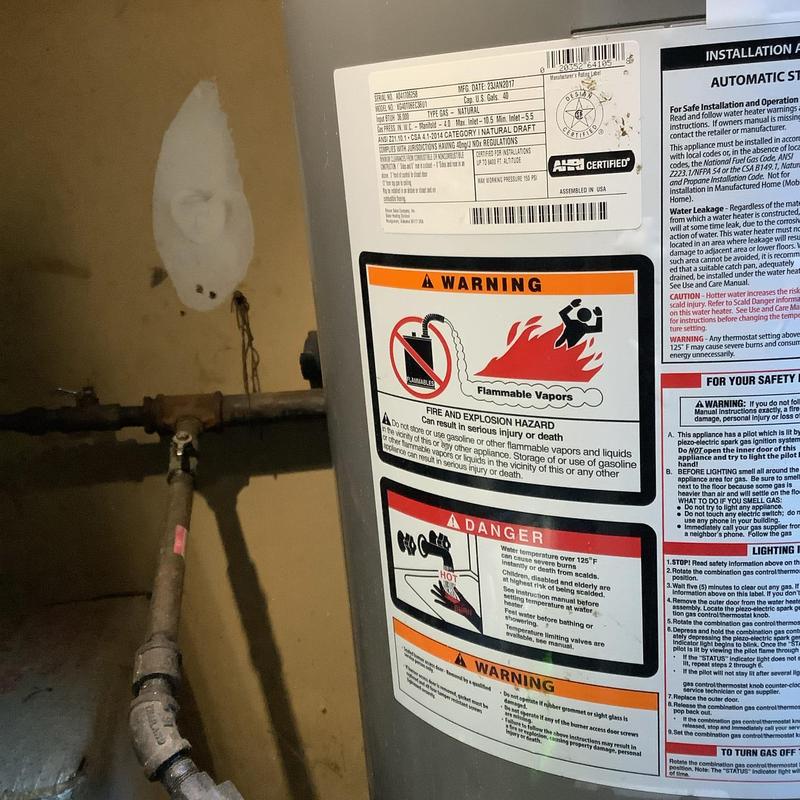 A plumber responded to a service call in Stafford, VA for a natural gas water heater that stopped producing hot water. The technician diagnosed the issue and provided a new unit estimate. The customer approved the replacement. A team is scheduled to return and install the new water heater.