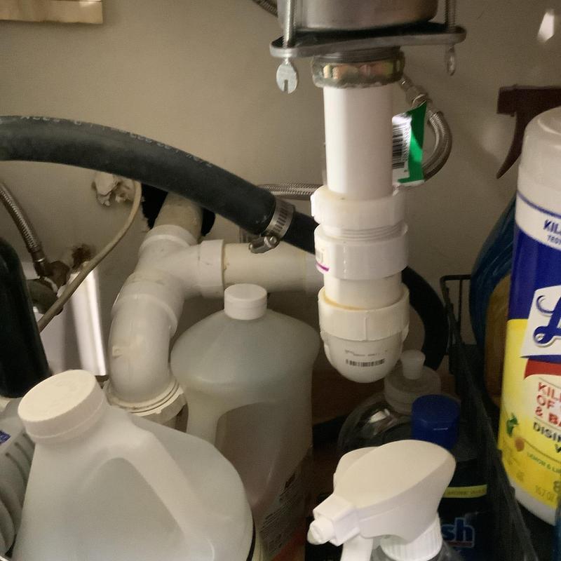 A technician in Stafford, VA completed a plumbing inspection for a new maintenance member. The inspection found a leak in a 40-gallon water heater and an issue with a kitchen sink drain. The technician repaired the drain and confirmed no leaks after testing. The customer declined the water heater repair.