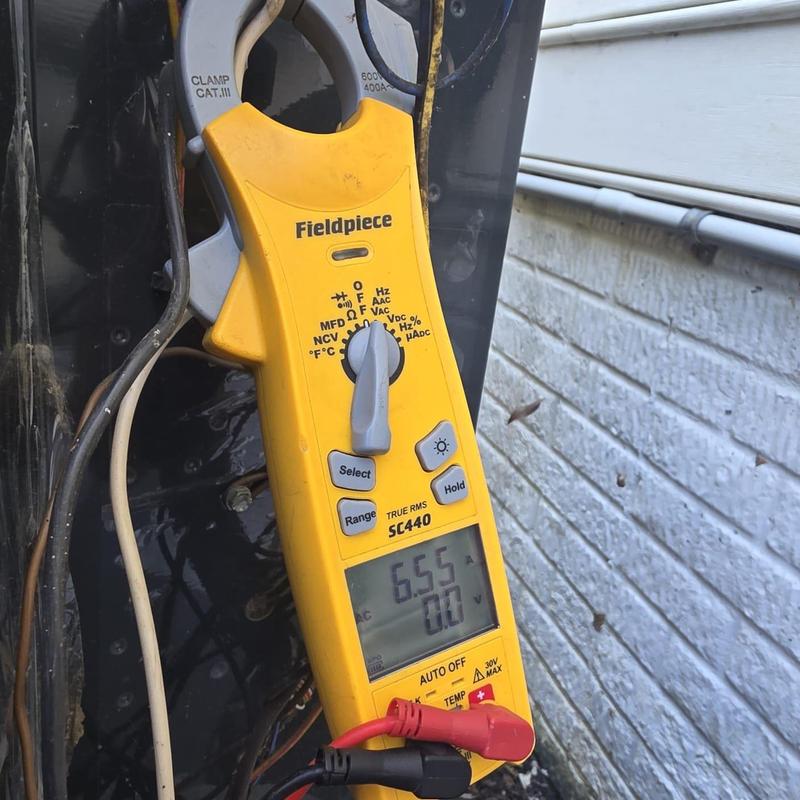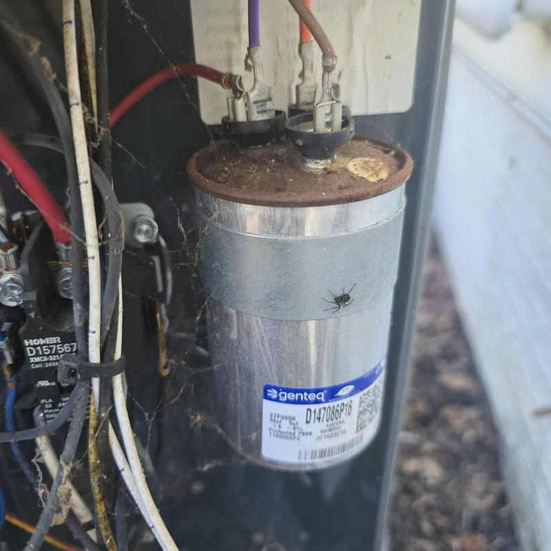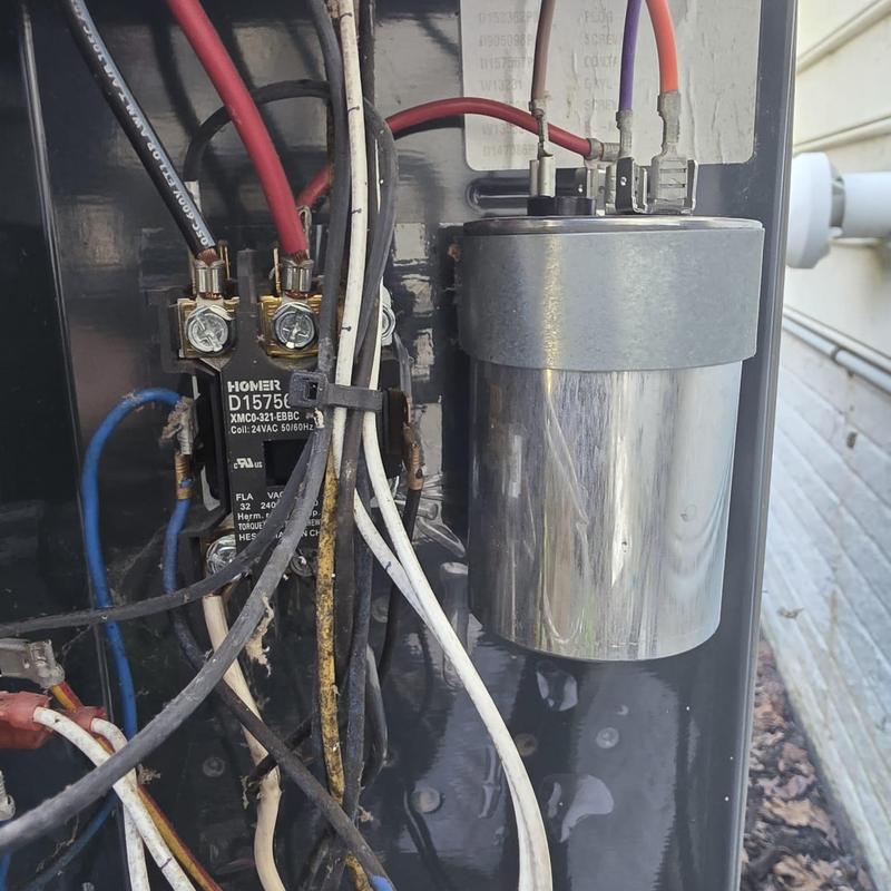 A technician in Fredericksburg, VA diagnosed and repaired a residential HVAC system with a failed outdoor unit. They replaced the main motor starting circuit, flushed the drain line, and confirmed full cooling function. The system was retested to ensure proper operation with no remaining issues.