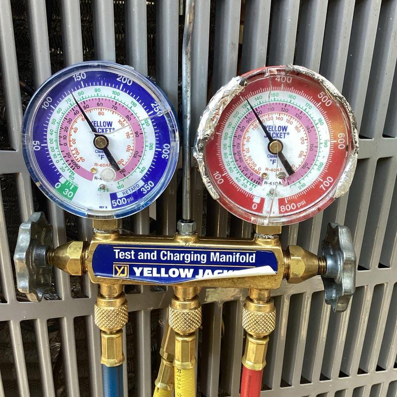 An HVAC technician completed routine air conditioning maintenance in Alexandria, VA. The system showed strong performance with accurate temperature and subcooling readings. The technician inspected and confirmed proper operation of safety components and replaced the air filter. The UV cell in the air scrubber is due for replacement after two years of use.