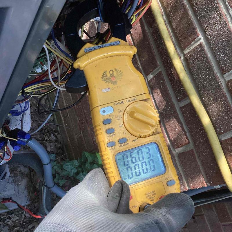 A technician in Herndon, VA performed a maintenance inspection on a 6-month-old HVAC system. The inspection confirmed safe operation and correct electrical performance. The technician recommended adding a surge protector to prevent power damage and installing an air scrubber to help reduce allergens, VOCs, and biological particles, improving the system’s indoor air quality.