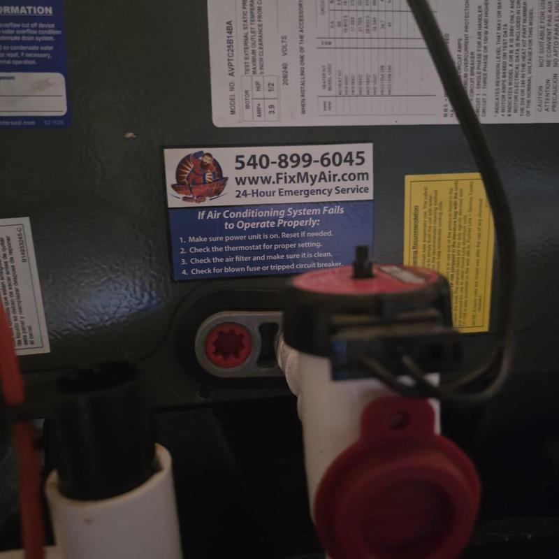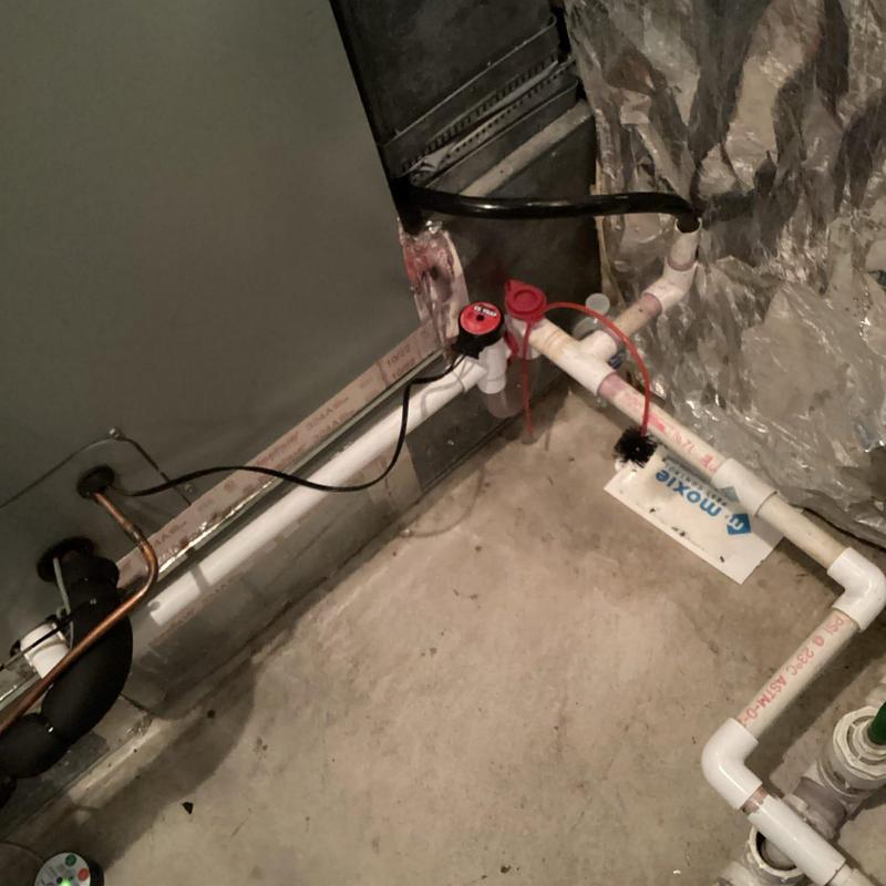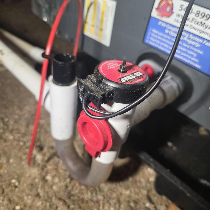 An HVAC technician in Fredericksburg, VA cleared a clogged condensate drain causing an emergency AC shutdown. They removed standing water, restored proper drainage, restarted the system, and confirmed cooling. They advised installing a condensate pump, rerouting the drain, cleaning the air handler, and adding an air purifier to improve long-term operation and indoor air quality.