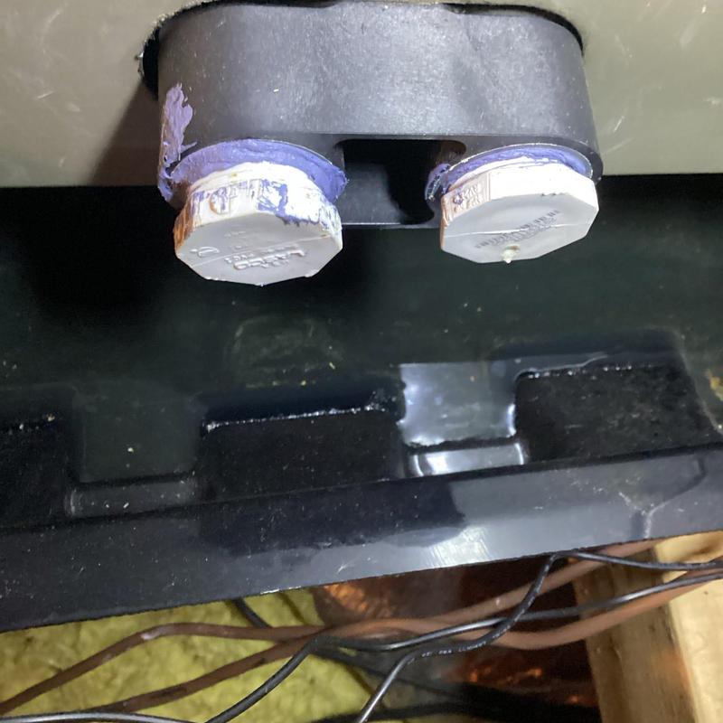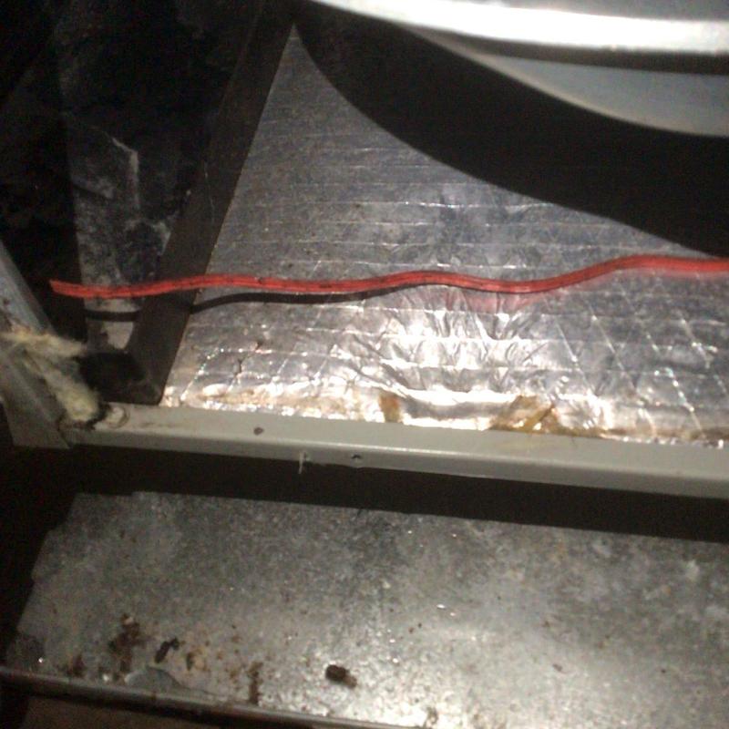 A technician in Herndon, VA diagnosed a no-cooling issue caused by a clogged drain line in an attic heat pump system. The blockage triggered a safety switch, cutting power to the Nest thermostat. Inspection also revealed significant rust on the evaporator coil, which may require future repair. Temporary functionality was restored.